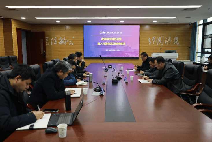 (通讯员:胡启婧)2月17日,校党委副书记王林清、未来城校区管理办公室主任杨从印、校友与社会合作处处长隋明成一行来我院调研,就“发挥学校特色优势,融入并服务武汉新城建设”开展专题座谈。我院党委书记杨昌锐、院长於世为、副院长郭锐、王广民、池毛毛参加了此次座谈。