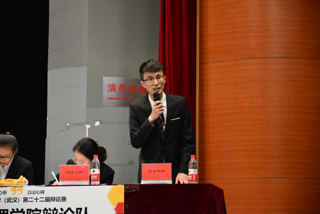 本次决赛的辩题是“这个世界是一出喜剧/悲剧”, 我院辩论队持反方立场。我方出场辩手是大二至大四年级的四位本科生,一辩白音来自经济学081151班、二辩王亦霏来自旅游管理085171班、三辩李婧妍来自工程管理089151班、四辩赵恒松来自工商管理080161班。