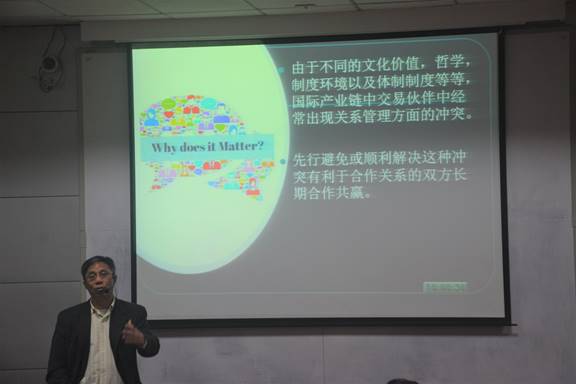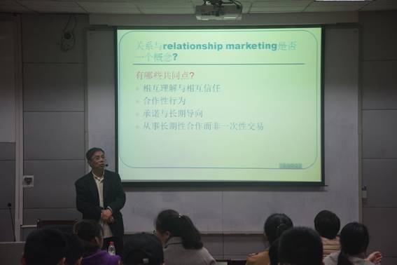 讲座中,王承璐教授讲述了三中关系概论,同时提出了中国的关系与美国的relation marketing的区别。通过乔家大院这个例子,王教授提出了传统商业文化不适应现在的大商业环境,并延伸到文化层面来阐述差异。王承璐教授在此次讲座中主要围绕文化层面来解析产业链中跨文化的关系管理,层层递进,辅以真实的例子来化抽象为具体,为大家带来了一场精彩的讲座。