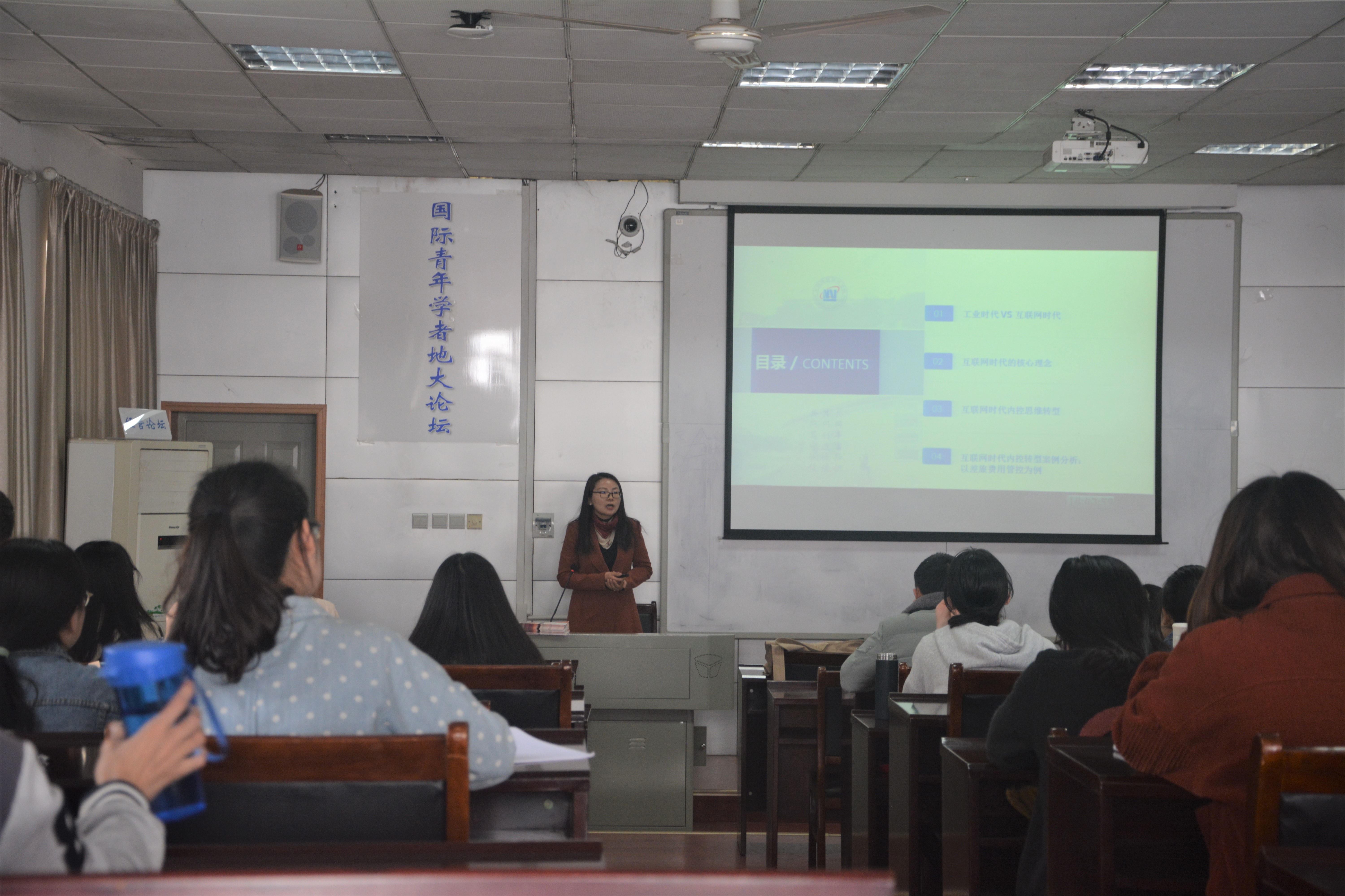 (学生记者:吴麟)2019年4月3日下午2点半,第208期经管论坛在MBA楼208成功举办,本次论坛的主讲嘉宾是北京国家会计学院教研中心副教授胡明霞副教授。胡明霞副教授是太阳成集团tyc122cc入口会计专业的校友,中国会计学会会员,美国会计学会会员,曾在美国俄亥俄州立大学访学,在《会计研究》等刊物发表学术论文20多篇。本次论坛胡老师讲解的主题是"互联网时代内控思维创新及其应用解析"。经管学院部分师生到场听讲。
