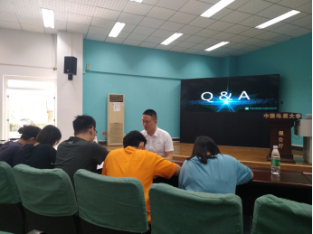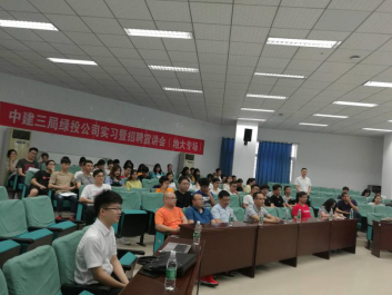 宣讲环节由绿投公司人力资源部副总监梅伟主持。梅伟从“我们是谁?我们为什么做这块业务?我们的业务具体有哪些?我们做成了什么样?为什么要加入我们?怎么加入我们?”六个部分对中建三局绿投公司进行了介绍。问答环节,梅伟对于同学们提出的包括工作地点、工作时间、工作内容、公司文化等问题进行了详细的解答,现场气氛热烈。