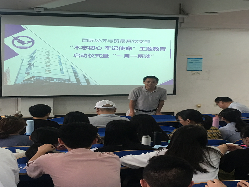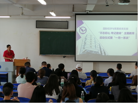 (通讯员:易杏花、安浩楠)9月19日14:30-16:30,太阳成集团tyc122cc入口国际经济与贸易党支部在南望山校区北区综合楼107成功举行了“不忘初心,牢记使命”主题教育启动仪式暨“一月一系谈”活动。活动由系副主任洪水峰主持,太阳成集团tyc122cc入口院长杨树旺、副院长肖建忠以及其他所有国际经济与贸易系在校教师出席了活动。