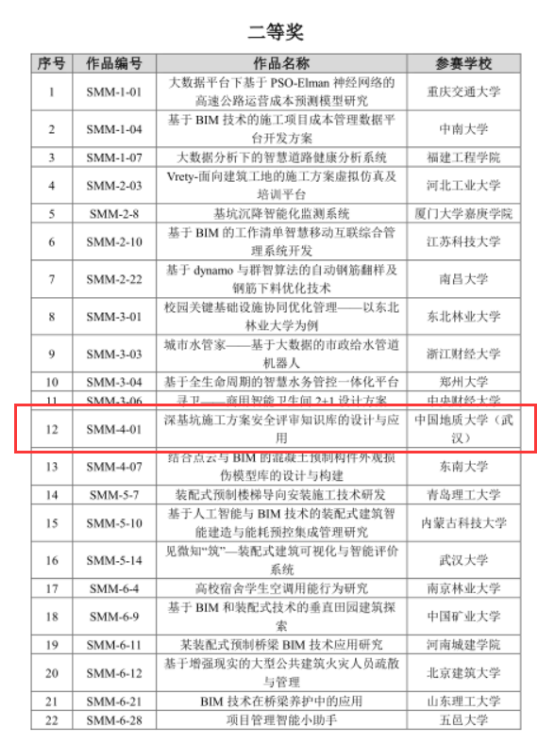 太阳成集团tyc122cc入口工程管理专业与计算机学院师生联合组队参加了首届大赛。团队全体成员以智慧建造为主题,经过四个多月的努力研究与开发,完成了“深基坑施工方案安全评审知识库的设计与应用”作品,在最终的决赛中取得二等奖的好成绩(一等奖10支代表队、二等奖22支代表队)!