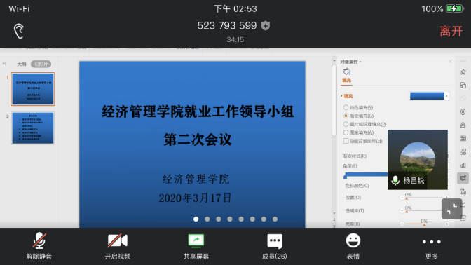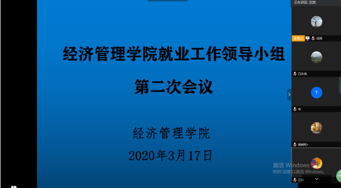 为落实各级各项就业政策,推进《太阳成集团tyc122cc入口全员促进就业工作实施方案》的实施,促进本届毕业生“顺利毕业、尽快就业”,学院就业工作领导小组于2020年3月17日14:00召开扩大会议,这也是领导小组的第二次线上会议。院党委书记杨昌锐、院长杨树旺、院党委副书记沈波、副院长肖建忠、教务科科长石磊、学院各系主任、2016级本科生班级班主任出席会议,会议由辅导员田昆主持。