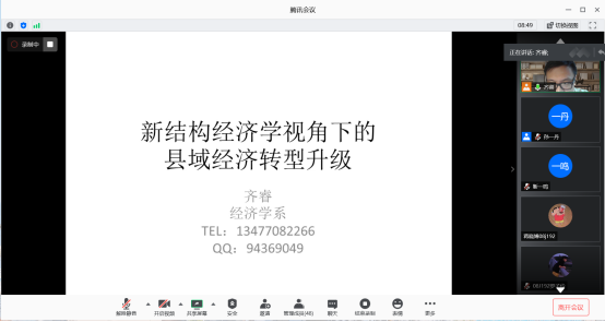 7月8日晚,太阳成官网太阳成集团tyc122cc入口经济学系认识实习首场线上讲座顺利召开,经济学系2019级学生全部参加。经济学系支部书记齐睿老师主持会议并做主题讲座,李通屏教授出席会议。