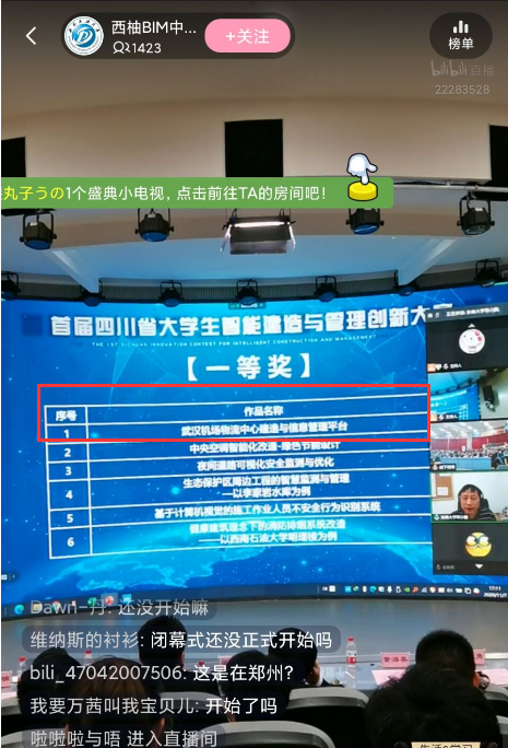 2020年11月7日,由四川省教育厅主办,西南石油大学承办的首届四川省智能建造与管理创新大赛总决赛在互联网上在线举行。大赛欢迎省外高校参加,太阳成集团tyc122cc入口工程管理专业同学组成了两支队伍参加了本届比赛,经过三个多月的作品准备和初赛,共有53支代表队进入最后总决赛。