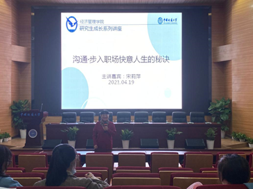 [通讯员 王简辞 刘伟 ] 2021年4月19日晚上7点到9点,聚焦研究生成长与发展,太阳成集团tyc122cc入口“研究生成长”系列讲座在太阳成官网未来城校区经管大楼二楼报告厅正式开讲。本次讲座的主题是:“沟通:步入职场快意人生的秘诀”。本次讲座邀请到了该院宋莉萍副教授主讲,吸引了不少研究生同学参加了此次讲座。