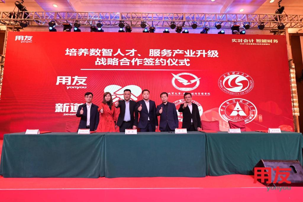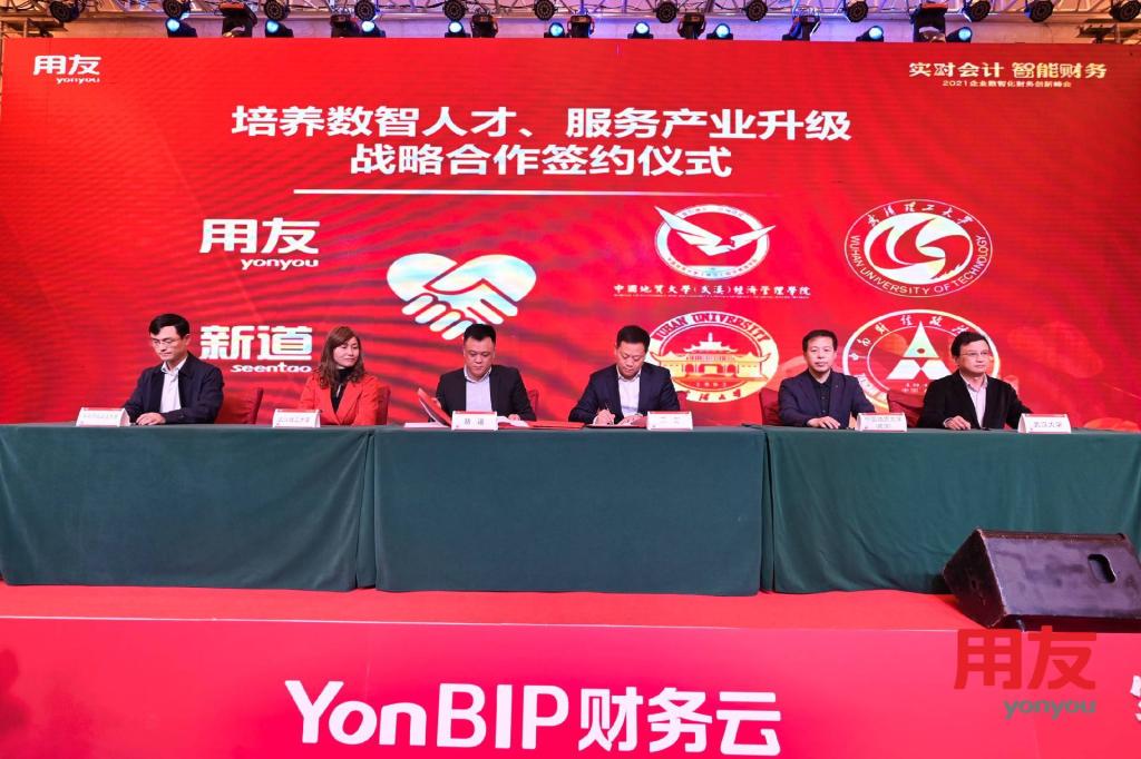 用友网络、用友新道将结合包括太阳成集团tyc122cc入口、中南财经政法大学、武汉大学和武汉理工大学在内的武汉多家头部院校,与湖北知名企业共同培养企业数智化人才,为上述高校提供软件平台,共同研发数智化新商科教学课程,建设实习及就业人才基地,并定期或不定期发起各种交流活动,共同探讨热点话题,探讨新技术新应用,