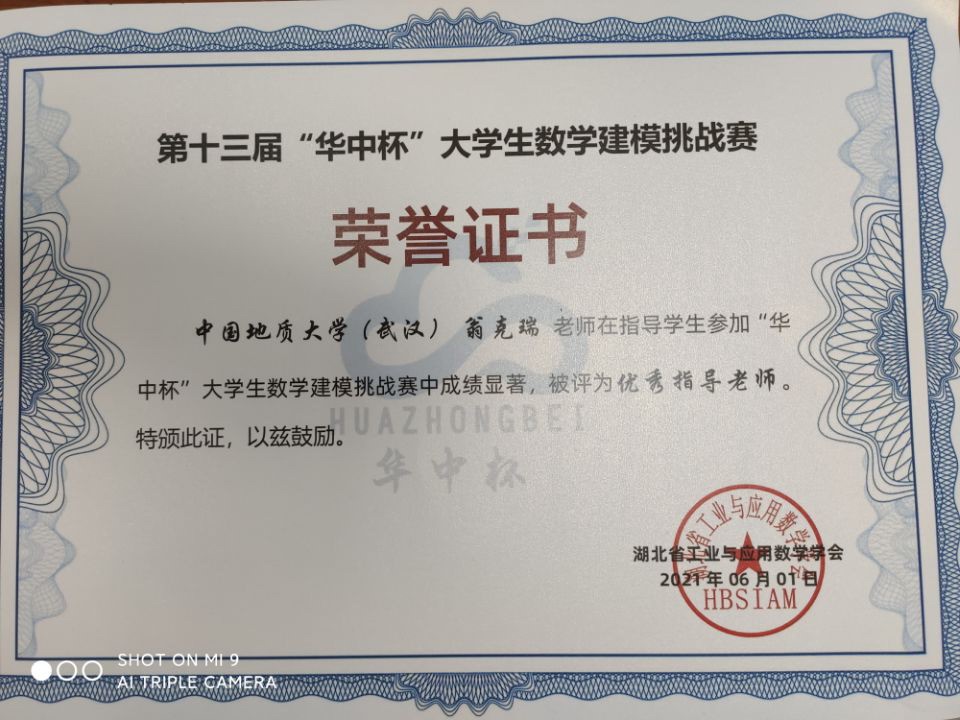 在第十三届华中杯数学建模挑战赛中,来自全国130所高校的1123支队伍参赛,信管专业大二学生郭志刚获一等奖、袁亮获得二等奖。翁克瑞老师被评为“优秀指导老师”称号。
