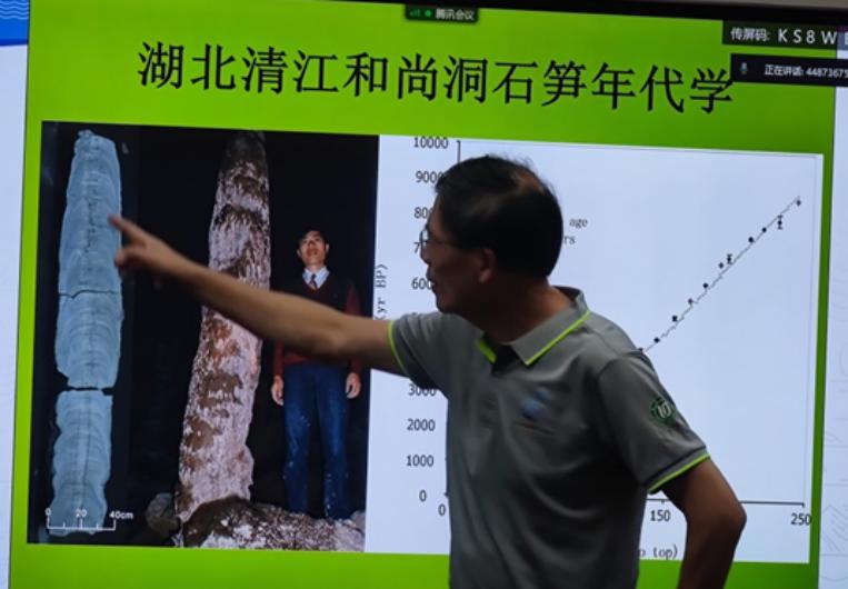 在两个半小时的讲座和座谈分享中,胡教授结合通山隐水洞地质公园内的钟乳石及其他典型岩溶景区的照片,不仅为实习师生在实习中观察到的景观细节答疑解惑,而且结合自身及国内外科学家对溶洞及石笋等溶洞沉积物的科学研究,为师生解译记录在溶洞景观中的气侯环境变化信息,揭示深藏在溶洞里的自然奥秘。