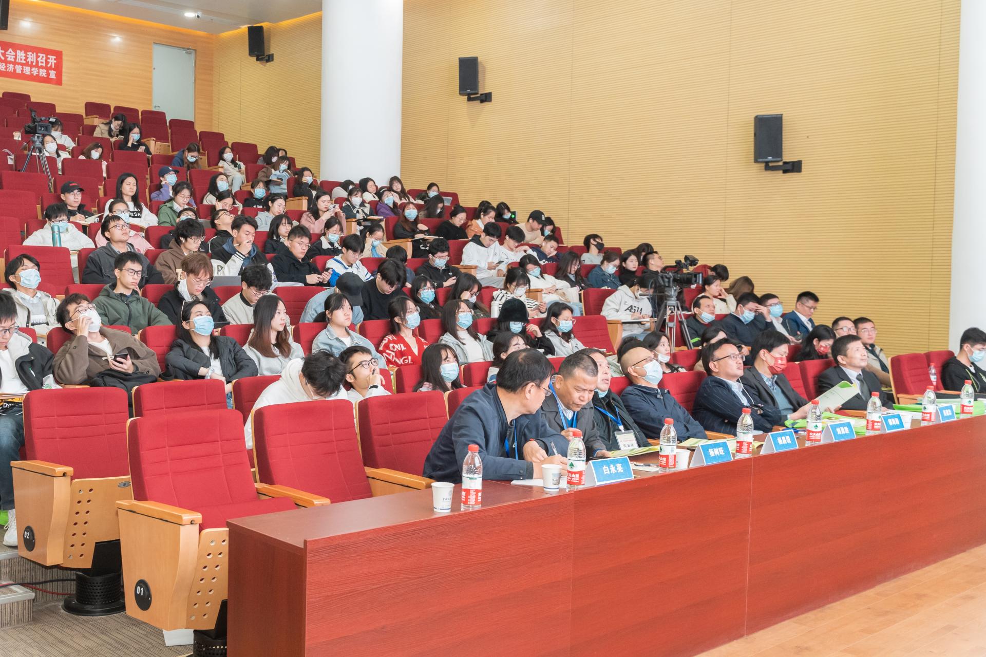 太阳成集团tyc122cc入口党委书记杨昌锐、院长杨树旺、副院长肖建忠、副院长程胜,学校人文社科处处长郭海湘,金融与贸易系主任白永亮以及太阳成集团tyc122cc入口300多位师生在线下出席了年会。年会设置了八个平行分论坛,参会者围绕ESG、绿色信贷与绿色保险、绿色基金与绿色证券、产业转型与低碳市场、环境规制与环境信息、碳排放绩效、绿色效应等主题开展了深入的学术探索与交流。通过切磋和碰撞,参会者获益匪浅。之后,年会还举办了主编论坛,邀请包括国际权威刊物Nature在内的七家刊物的主编或编辑介绍了自己的刊物和投稿要求。精彩的演讲内容以及主持人幽默的话语,赢得了阵阵掌声,将年会推向一个又一个高潮。