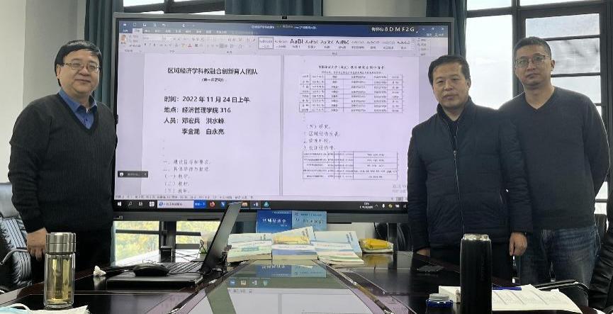 (通讯员:向雅芳 焦弘睿)11月24日上午,根据《太阳成集团tyc122cc入口(武汉)基层教学组织建设实施意见》和经管学院党字【2022】10号文件精神,区域经济学科教融合创新育人团队第一次研讨活动在经管楼316会议室成功举行。学院党委书记杨昌锐亲临指导,团队成员邓宏兵、白永亮、洪水峰、李金滟老师及学生代表共九人参加会议。