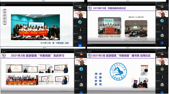 [通讯员周玲 刘晶晶]2022年11月24日下午,旅游管理系“书香班级”传递活动在线上举行。此次活动是由旅游管理系教师党支部同“结对领航”的08E22A和085201两个班级的团支部共同策划、组织的一次党团共建活动,旨在将2018年12月创办的“书香班级”建设引向新生班级,引领大一同学在阅读和学习中不断“精深管理学识,提升人文底蘊,增强文化自信”,打造阅读型班级。