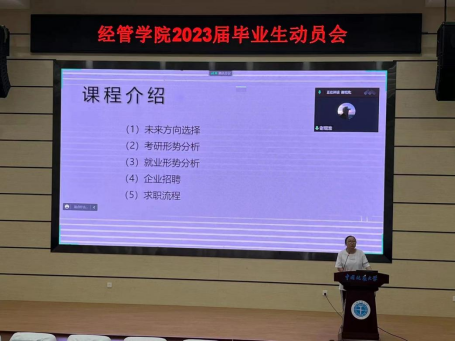 学院党委副书记李少杰最后作动员讲话。他指出就业是一项系统性、科学性的工程,对于未来方向需进行理性权衡,积极主动地对自身未来发展进行合理规划。他表示就业与考研并不完全冲突,可以通过多种路径实现个人发展的大目标。他以求职过程中出现的“不参加宣讲会却抱怨就业难”、“还没考研就已经准备二战”等多种“怪现象”为例,用风趣幽默的语言对同学们提出“认清自己、认清就业、认清形势、做好准备”的要求。他相信在学院支持与同学们自身的努力下,都能收获满意的offer、考取理想的院校,实现阶段目标。