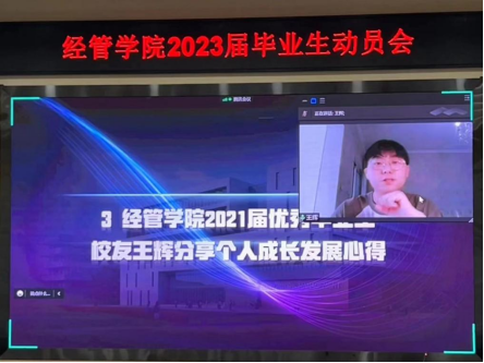 随后学院2021届优秀毕业生校友王辉进行个人成长发展的心得。他以自身考研与求职经历为案例,对考研压力应对、心态调节和求职注意事项进行了心得分享。他强调考研是多数毕业生当前的一件大事,但同时只是人生中的一件小事,实现成长成才并非只有考研这一条路,摆正心态方能正常发挥。