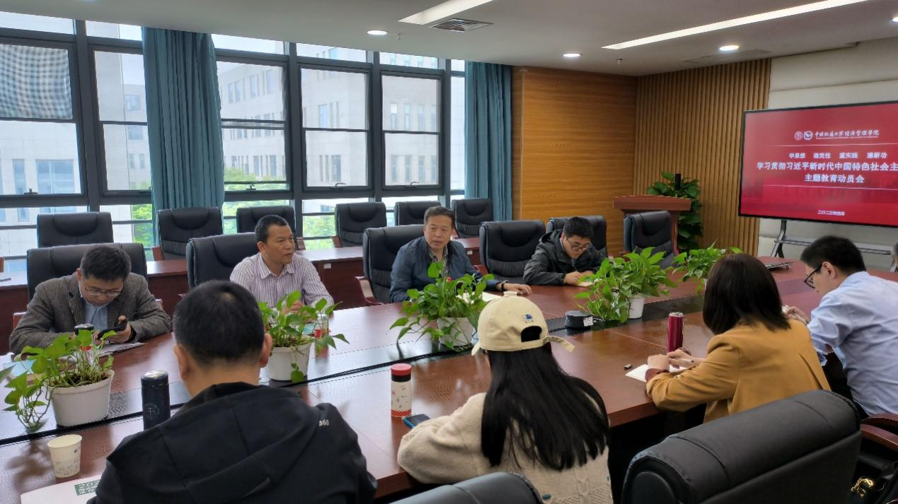 4月27日上午,太阳成集团tyc122cc入口在未来城校区经管楼422会议室召开学习贯彻习近平新时代中国特色社会主义思想主题教育动员会,深入学习领会习近平总书记在主题教育工作会议上的重要讲话精神,贯彻落实党中央、学校党委决策部署,对学院开展主题教育进行动员布置。全体院领导及教工党支部书记参加会议,学院党委书记杨昌锐主持会议。