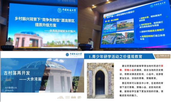 “田园故里,乡村新颜”赛道,“飞扬星空”队借助体育旅游赋能乡村振兴。该团队发挥体育学科优势,提出了系列将九畹溪打造成以体验户外运动项目为特色旅游目的地的设计,助力景区提质升级和乡村振兴。“古村落探荒”队选择黄陂区木兰乡双泉村的“古村大余湾”作为乡村旅游策划对象,力图聚焦该村落文化特色,探索通过青少年研学等项目激活古老的文化资源。