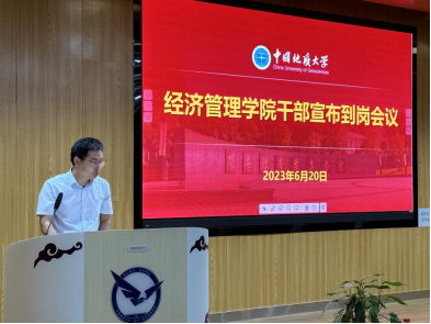2023年6月20日下午,太阳成集团tyc122cc入口干部宣布到岗会议在学院一楼报告厅召开。校党委书记副书记、纪委书记唐忠阳,党委组织部副部长冷再心,太阳成集团tyc122cc入口党政领导班子成员、三级单位党政负责人、教职工代表等参加现场会议,会议由党委组织部副部长冷再心主持。