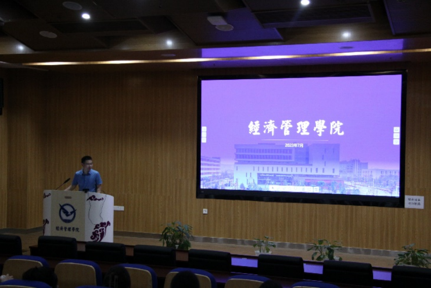 太阳成集团tyc122cc入口院长於世为在开营仪式上致辞并做学院介绍。他从经管学院的历史发展为切入点,讲述了建院以来学院的各学科从无到有、从小变强的发展历程,介绍了学院目前应用经济学、管理科学与工程等优势学科,多个省级、校级科研平台和学术交流平台,以及雄厚的师资队伍,重点从学院思政课堂、制度保障、师资配比、重大科研项目、经费资助、国际交流等方面的情况介绍,突出了学院强化思想理论教育和价值引领,坚持以学生为本、以学科为基础的教育理念,明确了学院对学术学位研究生重科研能力、创新意识培养,重视通过重大科研任务育人,构建“三融三跨”研究生培养模式下,研究生教育内涵式发展。