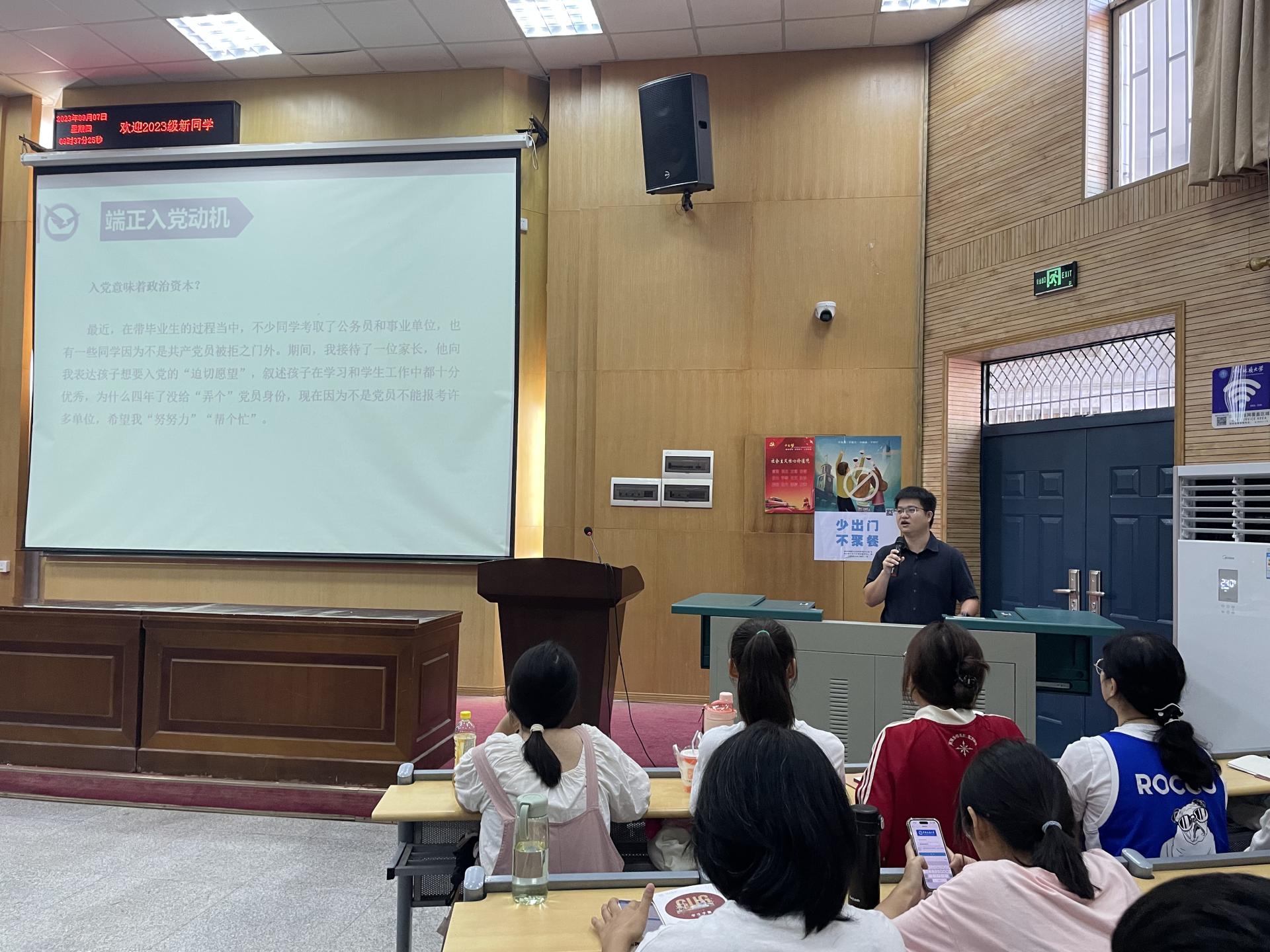 9月6日上午,在学校党委书记黄晓玫老师为全体新生讲授题为《仰望星空脚踏实地做知行合一地大人》的“开学第一课”后,学院2023级全体本科生在西区教三楼109参加2023级新生见面会,2023级辅导员徐媛老师介绍了学院和年级的基本情况,并就新生如何过好大学生活提出了建议。9月6日下午,徐媛老师首先作“学习制度与学业发展”主题报告,为同学们讲解大学的学习制度和学业发展项目,并为新生的学业规划提出建议。随后学工组努尔夏提老师为新生们讲解奖励资助政策与评优制度,涵盖国家、学校以及学院各类奖励资助政策,并提醒同学们在大学期间要注重全面发展。最后,学工组张弛老师作“学业与职业生涯规划教育”专题报告,从就业的角度指导新生制定个人发展规划。