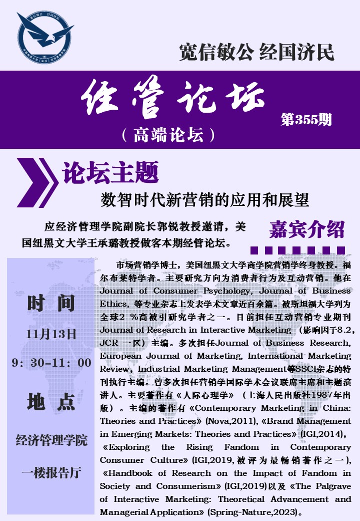 经管论坛(第355期)数智时代新营销的应用和展望