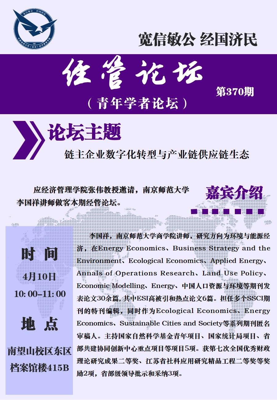 经管论坛(第370期)链主企业数字化转型与产业链供应链生态