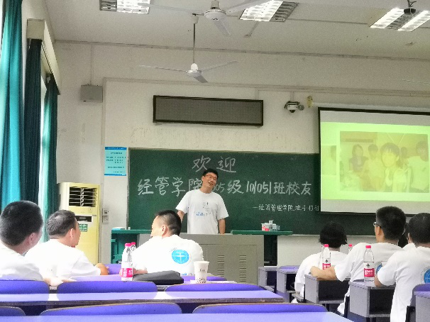 当天下午,经管地子归社团引导101051班全体校友参观校园,在学校大门、弘毅堂、操场、隧道、教室等留有青春印记的熟悉场景合影留念,并在教三楼203教室开展“十年再续手足深情 今朝再创卓越佳绩”主题班会。校友们齐聚一堂,观看大学时光回忆录,分享他们毕业后的工作状况、家庭生活和内心感触,字里行间里表达对母校的思念,热泪盈眶怀念曾经的师生、同学情