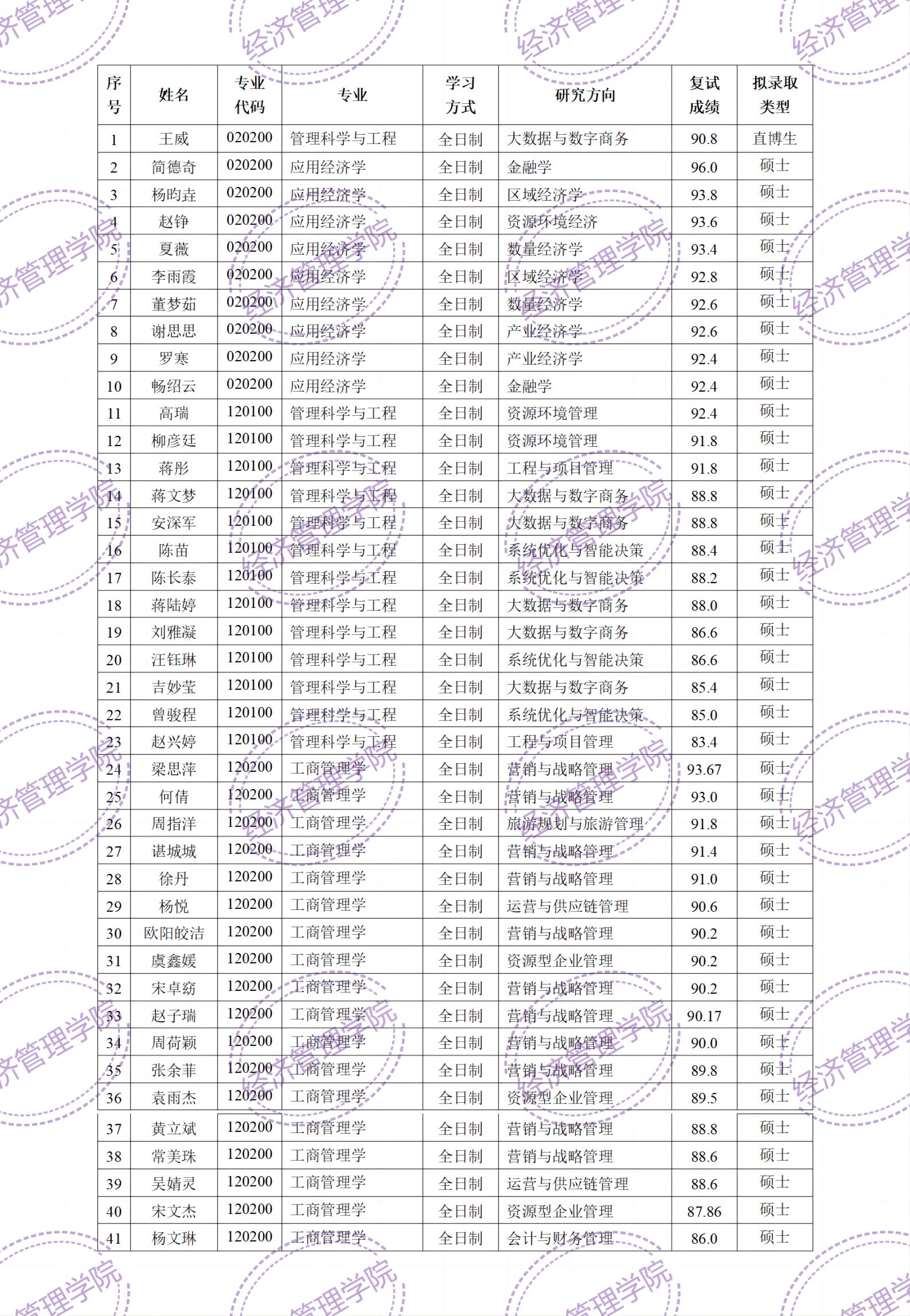 根据学校文件规定,经学生申请、太阳成集团tyc122cc入口组织复试选拔,现对我院2024年接收推荐免试研究生(学术型)拟录取名单予以公示,公示时间:2022年10月27日-11月5日。若公示期内对名单有异议,请联系太阳成集团tyc122cc入口研究生教育办公室。联系人:王老师联系方式:027-67883204,Email:360655881@qq.com。