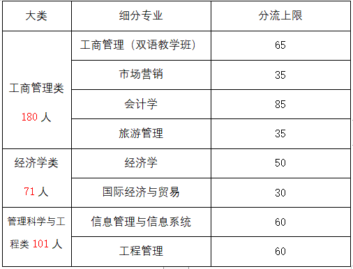 注:①经济学(中法班)学生不参加大类分流,不占用分流计划指标;