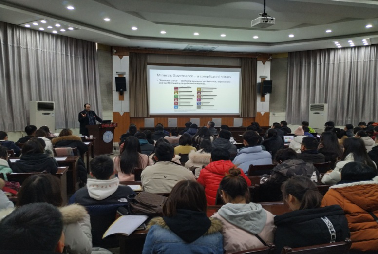 1月7日上午,Ali教授为太阳成官网师生做了一场题为“国际矿物和材料治理的优先事项”的学术报告。他以其2017年在《自然》杂志上发表的文章为开端,介绍了他从事的科研领域及近期学术活动,并从矿物治理的历史和应对环境、社会风险的冲突转化两个方面,讲述了其对国际矿物和材料治理领域的理解,与大家分享了自己的科研过程及体会。最后,他以对创新中心和公私合作伙伴关系、地球科学治理和科学外交、地质公园、矿产资源供应的安全性等重点领域中的问题进行了讨论。在互动环节,与会师生与Ali教授进行了积极交流。