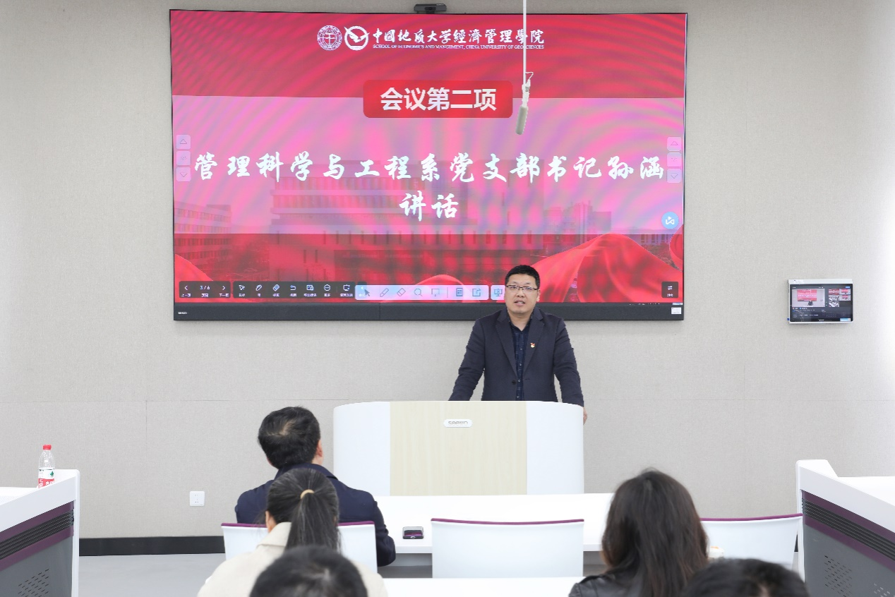 管理科学与工程系党支部书记孙涵表示,在学院党委的领导下,在学科建设、教育教学、科学攻关、管理服务等工作中涌现出了一批能充分发挥党员先锋模范作用的先进党员,为全院师生党员做出了模范表率。他讲到,作为一名教工党支部书记需要进一步加强理论武装,在常学常新中加强理论修养,在真学真信中坚定理想信念,在学思践悟中牢记初心使命,在知行合一中主动担当作为,在教书育人中深度融合“课程思政”,为培养学界标兵、政界楷模、商界精英而不懈奋斗!