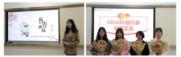 首届旅游管理“书香班级”085181同学代表陈星和王秀珊介绍并分享了该班建设“阅读型班级”的做法及成效。自“书香班级”启动以来,该班建设并制定了图书统一管理和有序流转制度,并在广泛征询同学阅读需求的基础上创造条件不断动态更新书库。在两年多的建设中,班级积极倡导“我与好书同行”,努力践行“我读书,我快乐,我成长”理念,以“多读书,读好书,好读书”为指引,鼓励每人每天自觉读书至少半小时、每周阅读笔记及分享优秀读物。“书香班级”在帮助同学们养成良好读书习惯的同时,以阅读感悟与收获的分享和交流,让班内同学在相互学习中不断提升专业素养、夯实文化底蕴、陶冶人文情操,有力助力大家向着“最美地大经管人”和“最美地大旅游人”而不断努力和成长。两位学长还寄语学弟学妹要领悟并传承活动精神、传递内心骄傲。