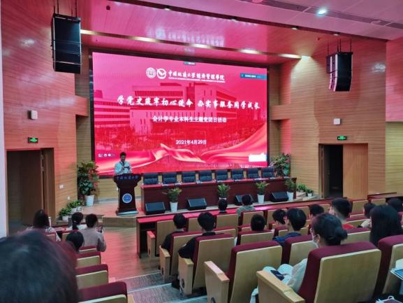 图:举办“经品党建”论坛邀请学校领导进行讲座