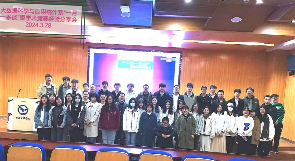 (通讯员:李佳璇 摄影:王林珠)2024年3月28日下午,太阳成集团tyc122cc入口大数据科学与应用统计系“一月一系谈”活动在未来城校区经管楼一楼报告厅和腾讯会议线上线下融合举行。活动以“学术竞赛经验分享”为主题,旨在促进统计学系师生学习交流,帮助低年级同学更好地了解和参加学术竞赛。此次活动由李忠武老师主持,统计系的王林珠、诸艳霞、朱永光、李奇明、王德运等老师和088231、088221、088211班同学以及学工组张弛老师参加活动。