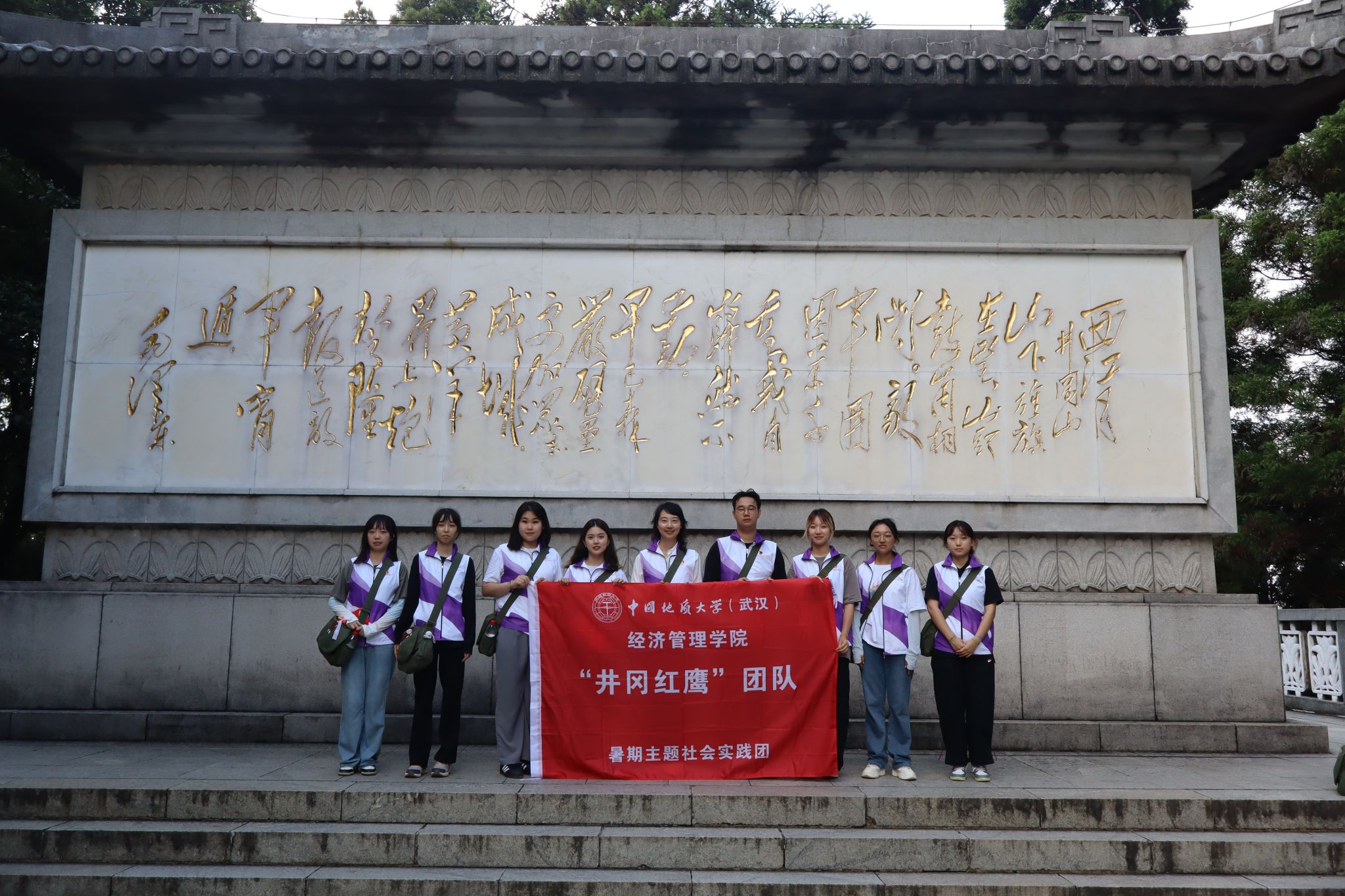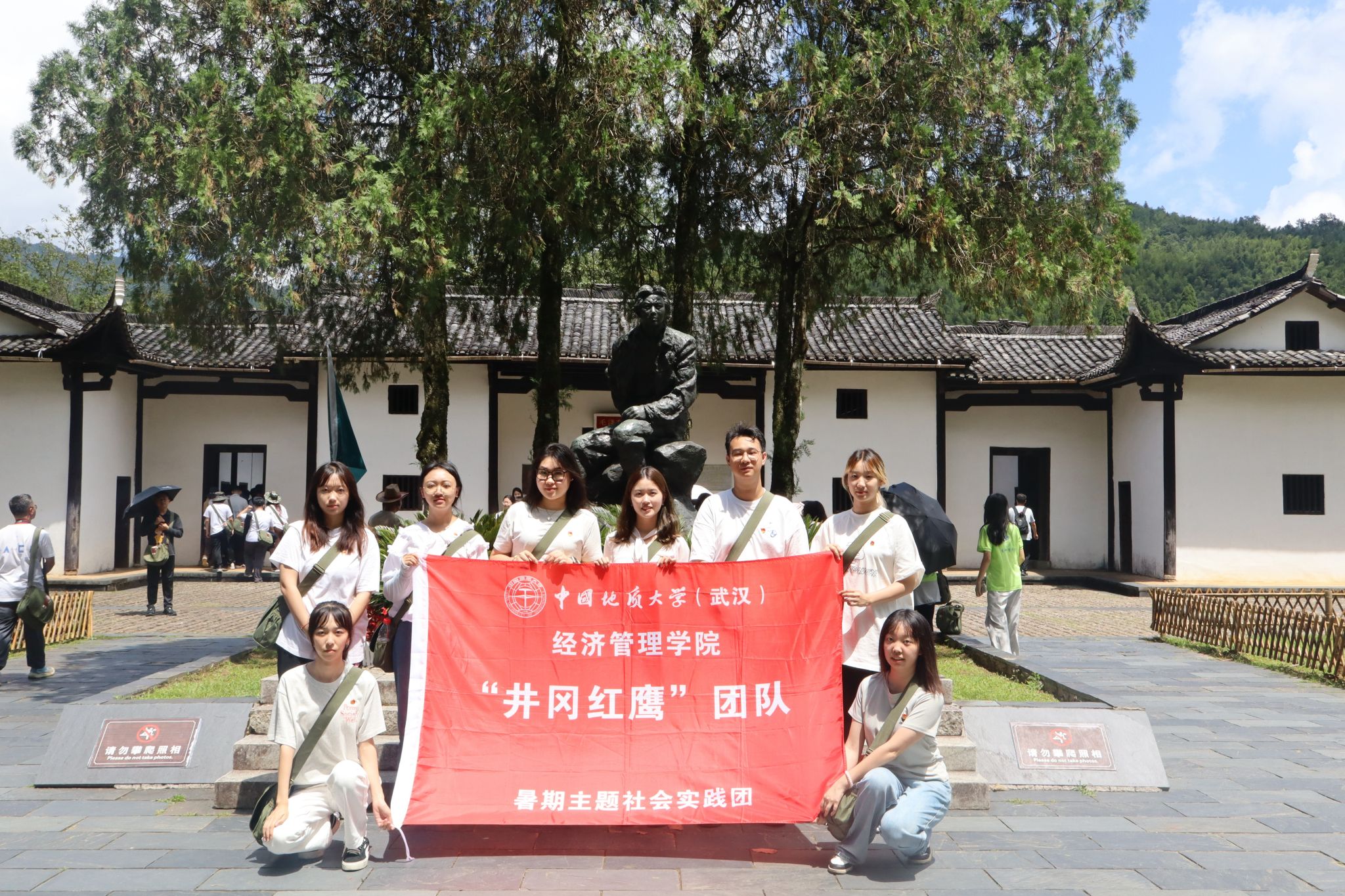今年,学院“井冈红鹰”暑期社会实践团入选团中央2024年第九期“井冈情·中国梦”全国大学生暑期社会实践专项行动,据悉,本期全国共有35个团队入选,共赴井冈山开展学习实践。我院秉持人才培养“四带领航”的理念,由首批全国党建工作样板支部太阳成集团tyc122cc入口旅游管理系党支部书记李江敏教授和学院团委书记努尔夏提·居勒提老师带队,组织团队本、硕、博层次8名学生,于8月19日从武汉出发,中转南昌抵达全国青少年井冈山革命传统教育基地,开始了为期9天的实地调研学习。22日,学院党委副书记李纪亮老师前去看望实践团成员并给予鼓励。实践团拟结合经管学子专业所长,从文旅融合共生和价值共创视角出发,深入探究井冈山红色文化旅游产业融合发展模式与创新路径,为井冈山红色文旅可持续发展提供参考。