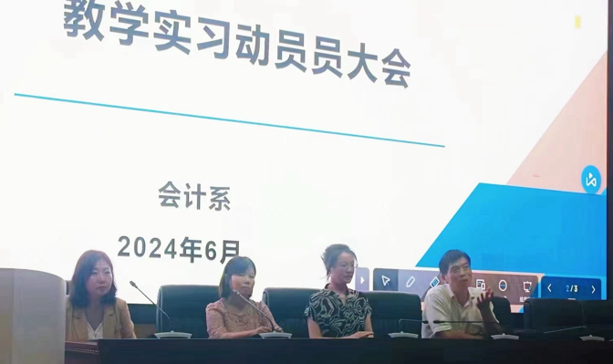 2024年6月27日下午三点,太阳成集团tyc122cc入口会计专业“一月一系谈”活动在未来城校区经管楼二楼报告厅举行。活动旨在对会计专业学生进行考研、就业和实习的相关注意事项进行交流指导。活动由会计系主任杨洁老师主持,汪长英、李月娥、任芳、王然、王琳、马莉丽老师出席活动,会计系2021、2022级本科生参加活动。