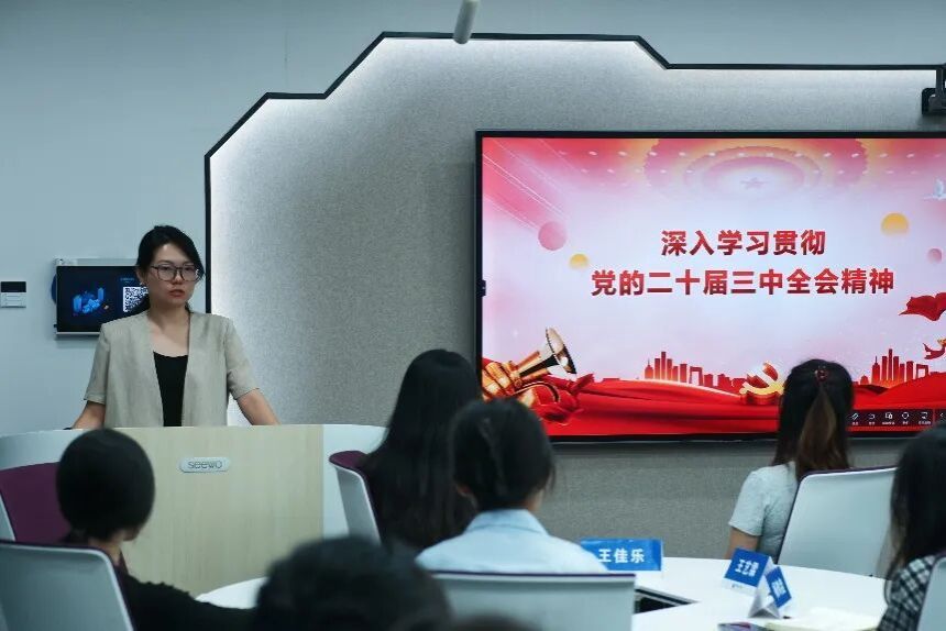 9月21日和24日,学院研究生辅导员陈静老师分别向2022级专硕应用统计团支部和学院研究生会团支部开展了“深入学习贯彻党的二十届三中全会精神”的主题宣讲活动。在该活动中,陈静老师紧密围绕习近平总书记在党的二十届三中全会上的重要讲话精神,以及《中共中央关于进一步全面深化改革、推进中国式现代化的决定》中的重要指示,从全会的历史背景、精神实质以及重要成果进行了深入浅出、条理分明、形象具体的解读。她指导同学们提高政治觉悟,树牢“四个意识”,坚定“四个自信”。在活动结束时,陈静老师激励同学们将会议精神内化于心、外化于行,以实际行动投身于国家建设的伟大事业中。