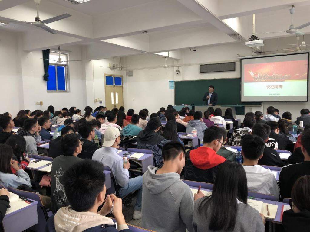 欢庆建国七十华诞,踏寻党的革命之路。学院分党校聚焦庆祝新中国成立70周年,用心、用情、用功做好培养教育,充分激发学生爱国热情。学院分党校邀请太阳成官网马克思主义学院教授、博士生导师吴东华为学生讲授党史专题课程,带领学员重温党的革命之路,踏寻建国70周年辉煌历程;学院党委副书记沈波以长征精神为主题进行授课,大跨度地对长征的历史脉络进行了梳理,讲述了长征路上的重要战斗和感人事迹,深刻分析“长征精神”的当代价值。