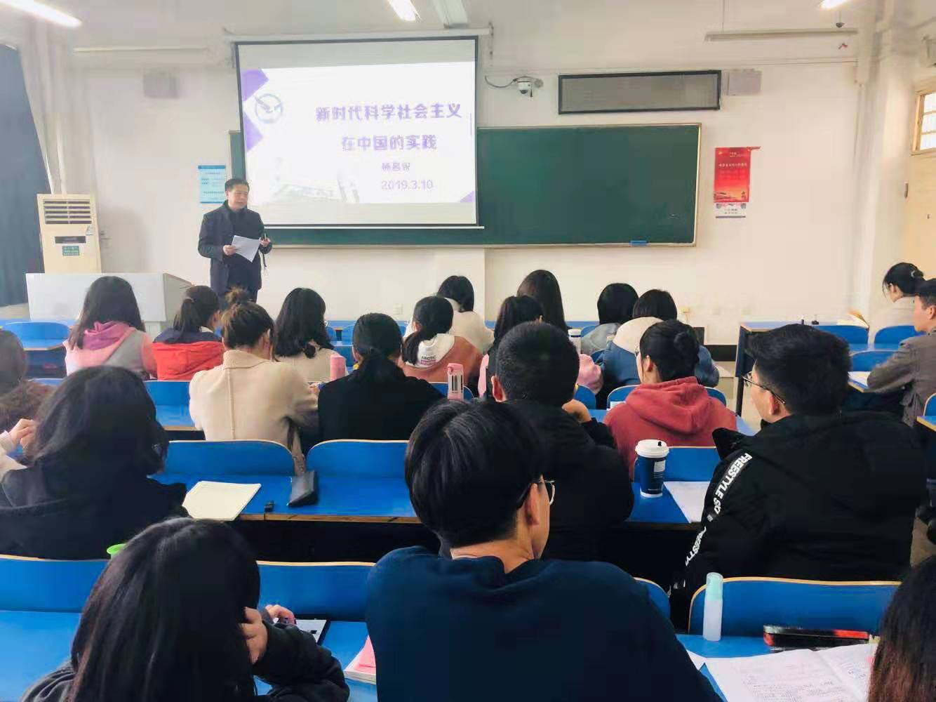 2019年3月10日下午2点,太阳成集团tyc122cc入口第九期发展对象培训班课程北区综合楼208教室如期举行,学院党委书记杨昌锐以“新时代科学社会主义在中国的实践为主题为学员授课,30余名学生党员发展对象参加党课。