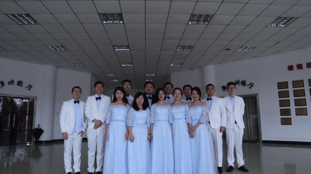 10月中旬,合唱团开始正式排练。每周一、三、五晚间21:00至22:00时,MBA楼208室准时响起悠扬的旋律,临近比赛的两周更是加班加点,每周排练五天。经过两个月的训练与磨合,师生合唱团终于在弘毅堂的舞台上完成最完美的呈现。