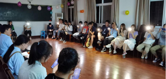 不仅如此,我们还开展了指手画脚小游戏,同学们都乐在其中。这一游戏,不仅考验同学们的表演与推断能力,更增强了同学们之间的默契,而评分最高的俩个小组还得到了丰盛的奖励。一部短视频《即使我们手中空无一物》更是撩动了同学们的心弦,让我们更加坚定了自己的信念。最后,同学们一起合唱《夜空中最亮的星》、《十年》这两首歌曲,唱给我们自己,更是庆祝祖国的生日。