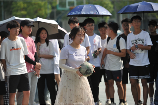 第四项:蒙眼互打。这个项目人气爆棚,活动现场瞬间成了武林高手过招现场,听声辩位,左突右刺,围观的同学们不时爆发出一阵阵笑声。