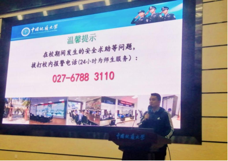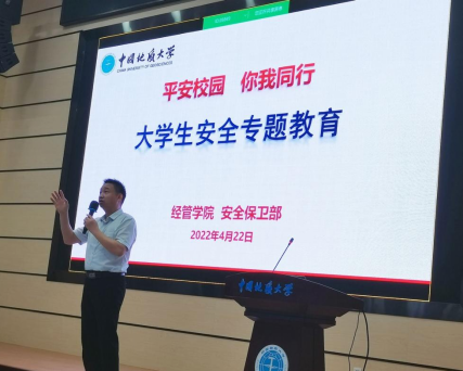 2022年4月22日,太阳成集团tyc122cc入口邀请学校安全保卫部有关同志,采用线上线下相结合的方式在全院本研学生群体中,全覆盖开展了大学生安全教育主题讲座,旨在进一步提高我院学生安全意识,尤其是防诈骗意识,全面做好学生教育引导工作,增强同学们的防诈骗意识和能力,避免各类案件再发生,让校园环境安全得到有力的保障。本次主题教育讲座由安全保卫部副部长彭冠军主讲,安全保卫部彭红进、邱鑫、张涛老师参加,学院团委副书记努尔夏提主持,全体2020级本研同学于公教楼208教室线下聆听,其余各年级同学通过地大视讯平台线上参与学习。