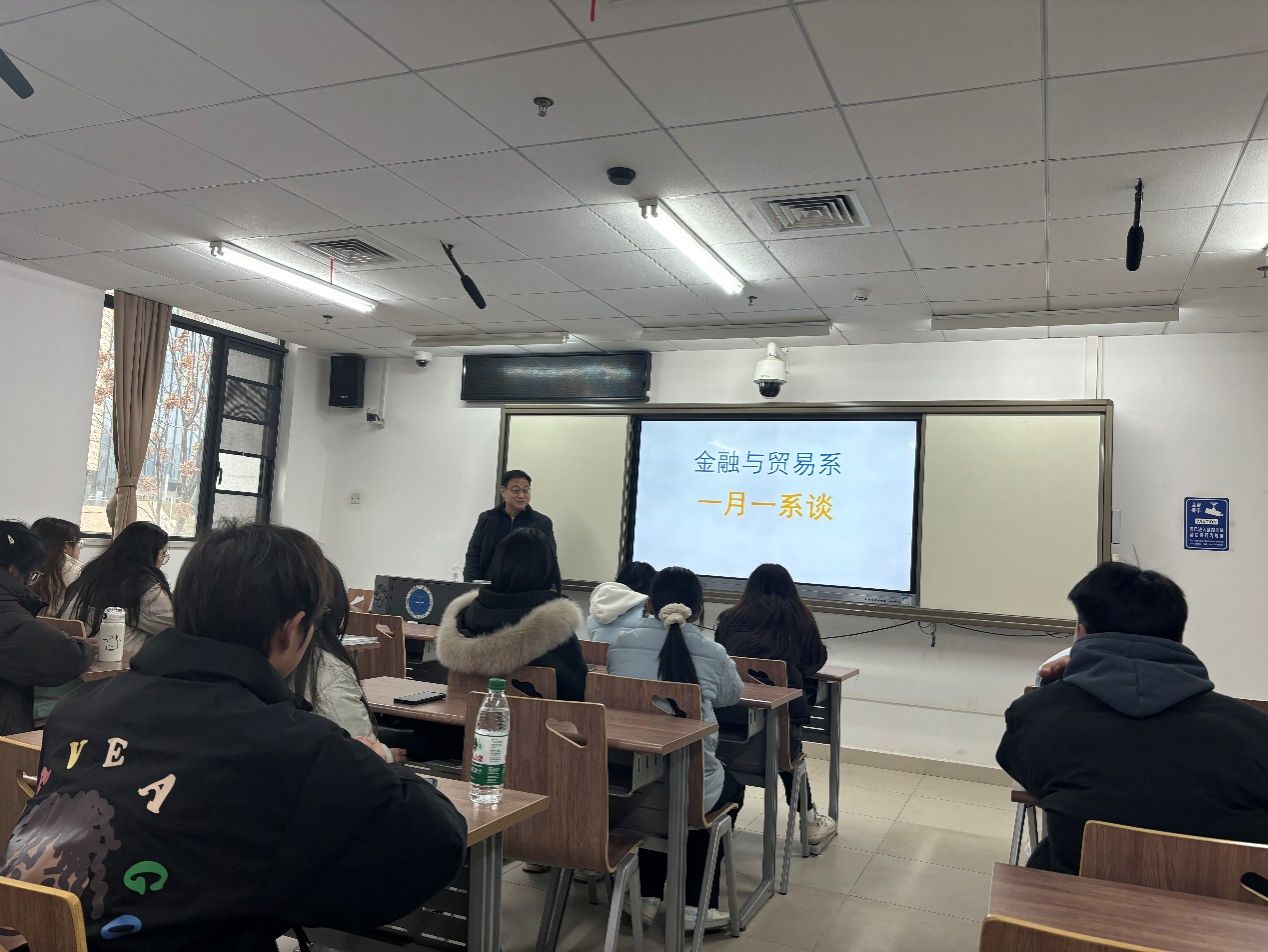 接下来,系主任白永亮教授结合自身多年的教学和研究经验,从大二学生的实际需求出发,详细分析了当前金融与贸易专业领域的就业形势和发展趋势。他指出,大二是大学阶段承上启下的关键时期,同学们应当在学习专业知识的同时,注重实践能力的培养,积极参与实习和社会实践活动,更加明确自己的学习目标,合理规划时间,平衡好学业与实践,为未来的职业发展奠定坚实基础。