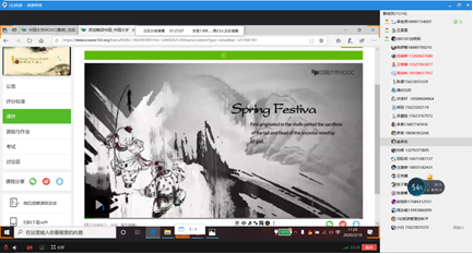 加强互动,激发学生学习积极性。定时的课堂互动交流,学生提问比面授踊跃得多(见截图),因此对教授内容要非常熟悉,需要提前做好准备。课余时间的个别交流,可以深入探讨有关专业问题。
