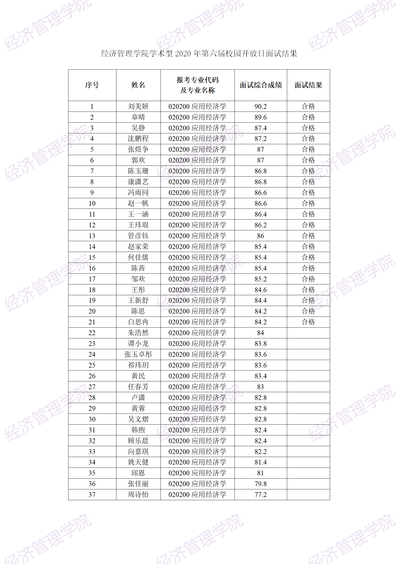 太阳成集团tyc122cc入口学术型2020年第六届校园开放日面试结果(见附件)现进行公示。公示起止时间为2020年7月17日至7月30日止。公示期内若有异议,请实名书面申诉(限工作日)。联系人:王老师,Email:360655881@qq.com。