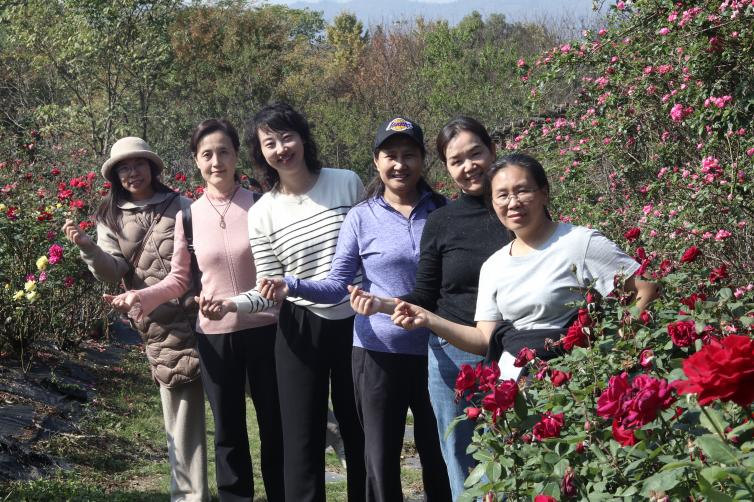 徜徉在斑斓的秋色中,卸下工作中的紧张与疲惫,大家尽情享受难得的秋日休闲时光。大家或在草坪上舒筋抻骨,或乘一架秋千,尽享午后秋阳轻抚的慵懒闲适;或在盛放着黄的、红的、粉的、白的各色玫瑰的花园内流连忘返,在争奇斗艳的花丛中合影留念,记录美好秋光。