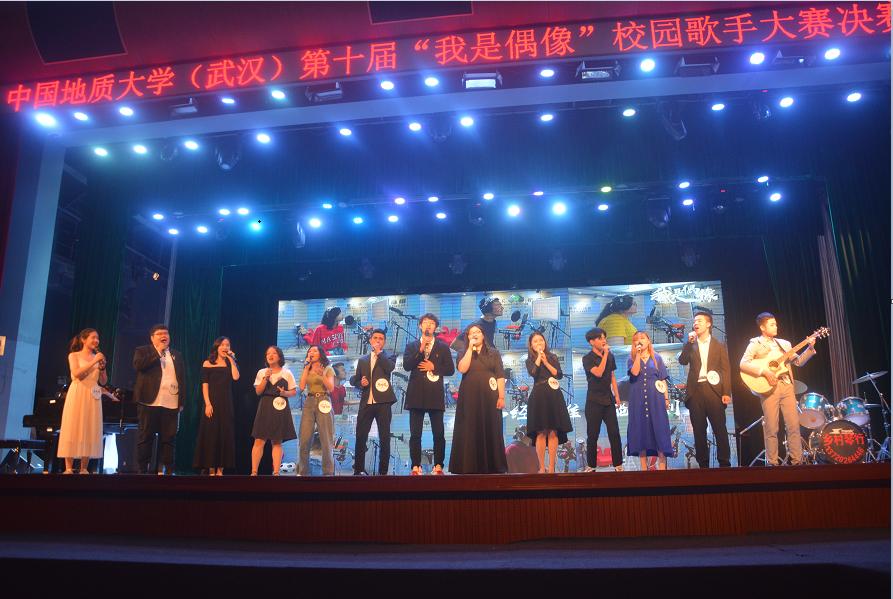 (通讯员:张康 摄影:经管文艺部)2019年05月28日晚7:00。第十届“我是偶像”校园歌手大赛决赛在弘毅堂隆重举行。太阳成官网艺术与传媒学院音乐系主任赵飞,音乐系教师刘雨薇,音乐系教师郭美岑,楚天音乐广播午间节目制作人、资深音乐DJ Candy,楚天音乐广播午间节目主持人大洋,湖北广播电视台音乐广播部新媒体及大型活动主理人、江湖音乐节舞台总监小水担任评委;学院党委书记杨昌锐,校学工处副处长苏洪涛,院党委副书记沈波,各学院教师、辅导员出席活动,各学院本、研学生千余人到场观看。