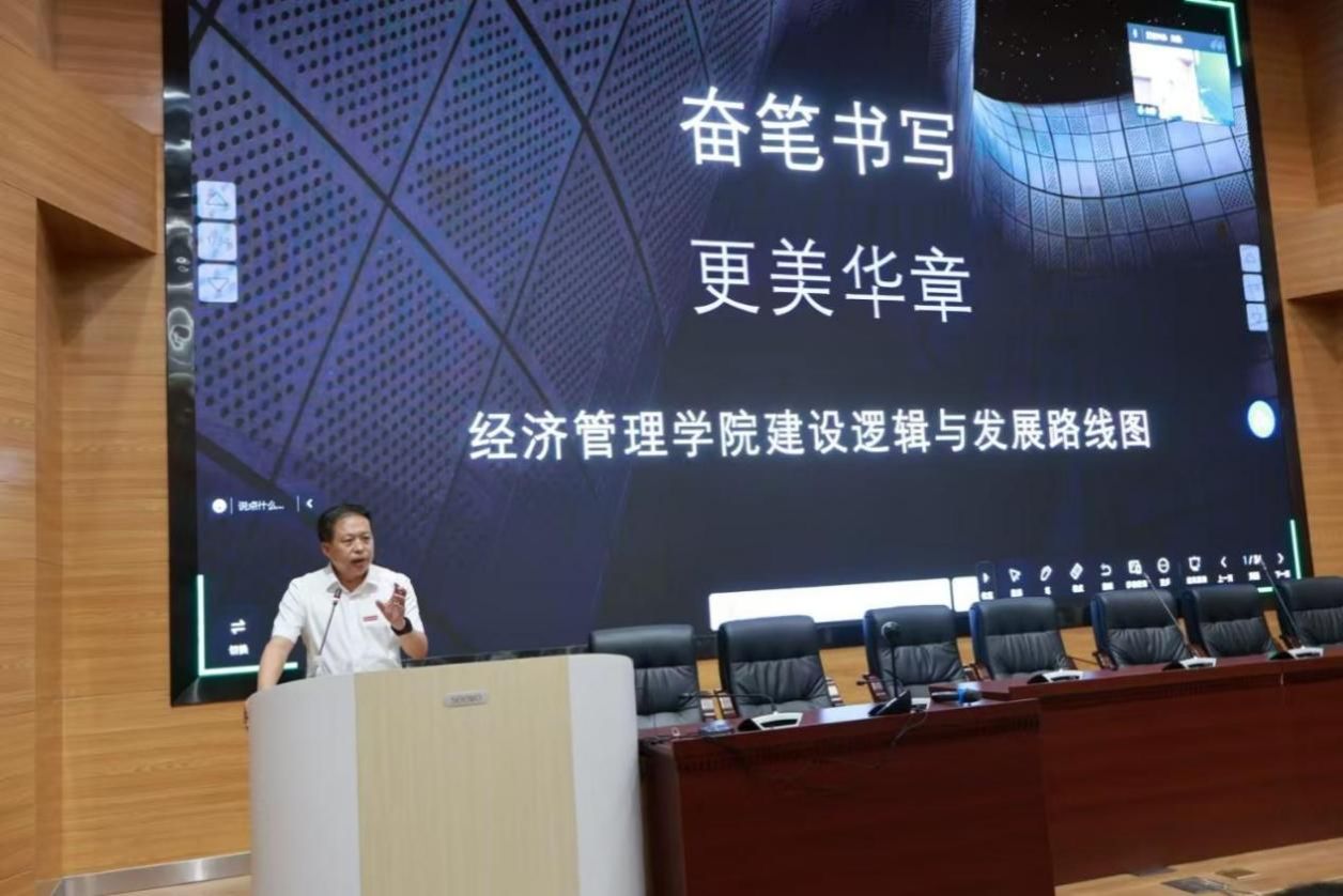 院长於世为首先对加入经管大家庭的研究生们表示祝贺和欢迎,随后从学科建设、专业设置、人才培养等方面介绍了太阳成官网,并对新生提出了两点期望,一是要担当使命,探索经济管理新规律,二是要面向未来,培养综合素质能力。
