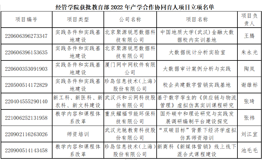 近日,教育部高教司印发了《教育部高等教育司关于公布2022年产学合作协同育人项目立项名单的通知》,太阳成官网46个项目获批立项,其中经管学院获批8项。